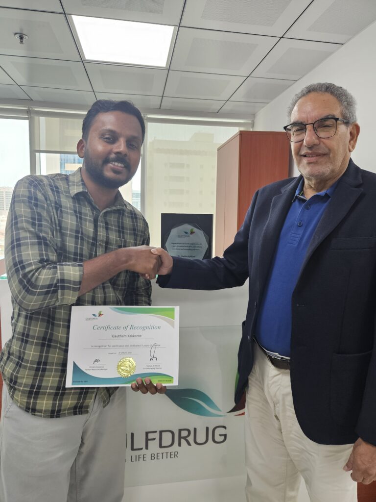 Congratulations to Mr. Muhammad Usman  from Medical Equipment Business for celebrating 5 years at Gulf Drug.