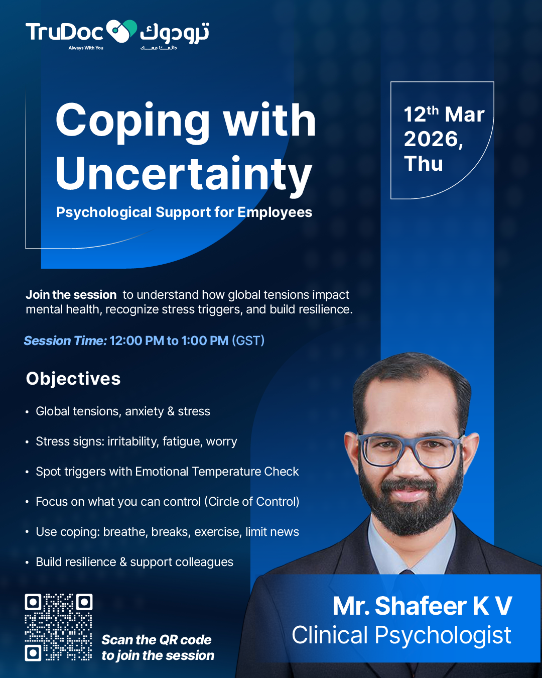 In today’s ever-changing environment, maintaining our mental well-being is more important than ever. Gulf Drug, in collaboration with TruDoc, Gulf Drug team members across branches have joined an insightful webinar session focused on psychological support and coping with uncertainty.